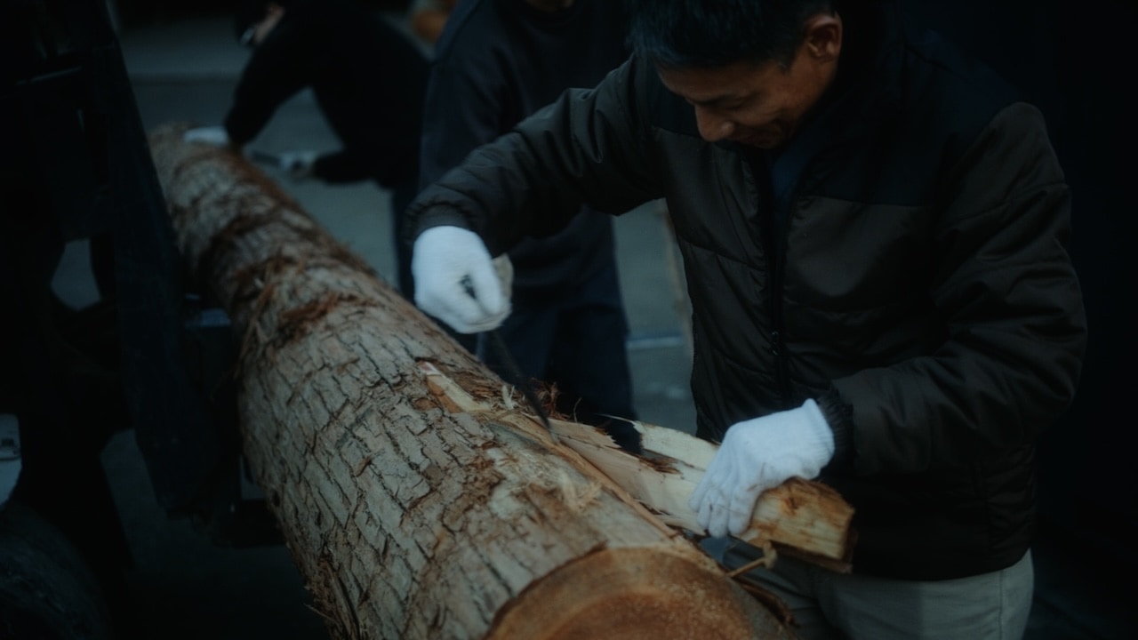 世界遺産にもなっている奈良県吉野で撮影を行い、プロジェクトの主役である吉野杉の伐採から製材までのストーリーを追いかけました。