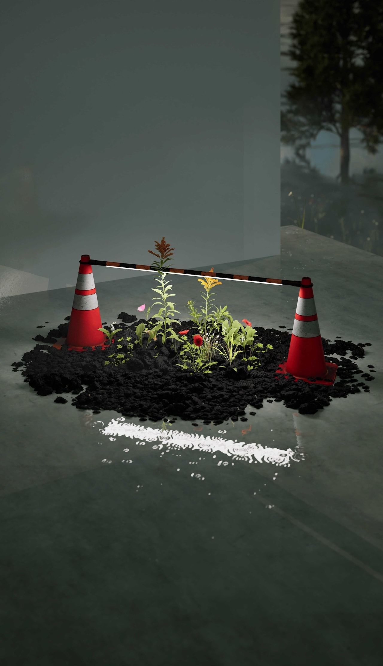 そして作家の土地に見立てたテントからは、拾い集めたオブジェやデジタルと自然が交差する世界が、3つの展示空間にわたりインスタレーションで構成されます。また、地下では出版レーベルRondadeと空間構成を行い、ワッシンクの10年間の活動をまとめたアートブックを展示、販売します。