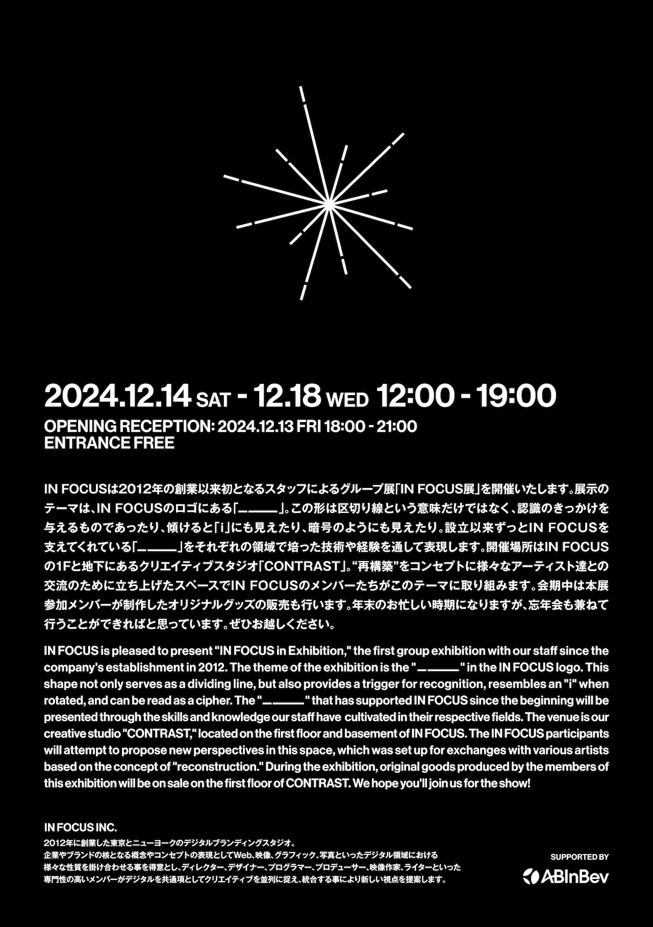設立以来ずっとIN FOCUSを支えてくれている「_ _____」をそれぞれの領域で培った技術や経験を通して表現します。