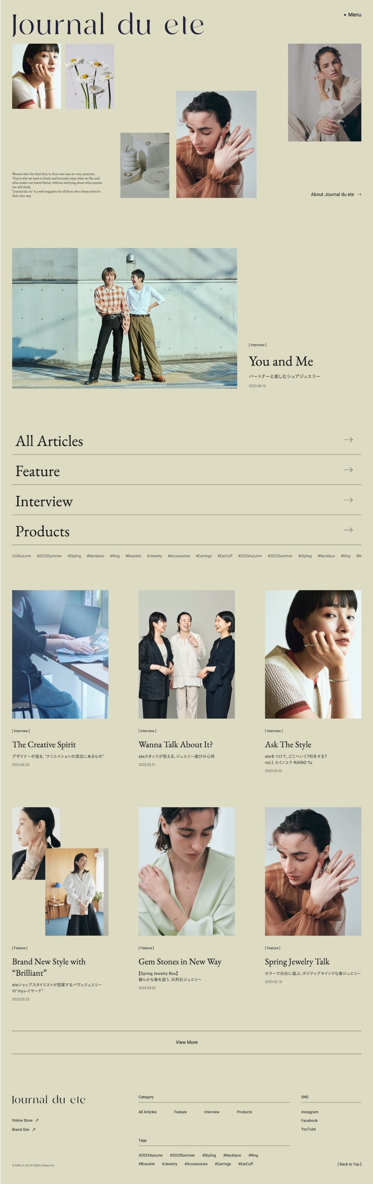 “ジュエリーをもっと自由に楽しんでいただきたい”という想いのもと、シンプルな美しさを讃えながら、ひとさじの遊び心を添えたジュエリーを展開する「ete」のオウンドメディア「Journal du ete」がWebサイトをリニューアル。