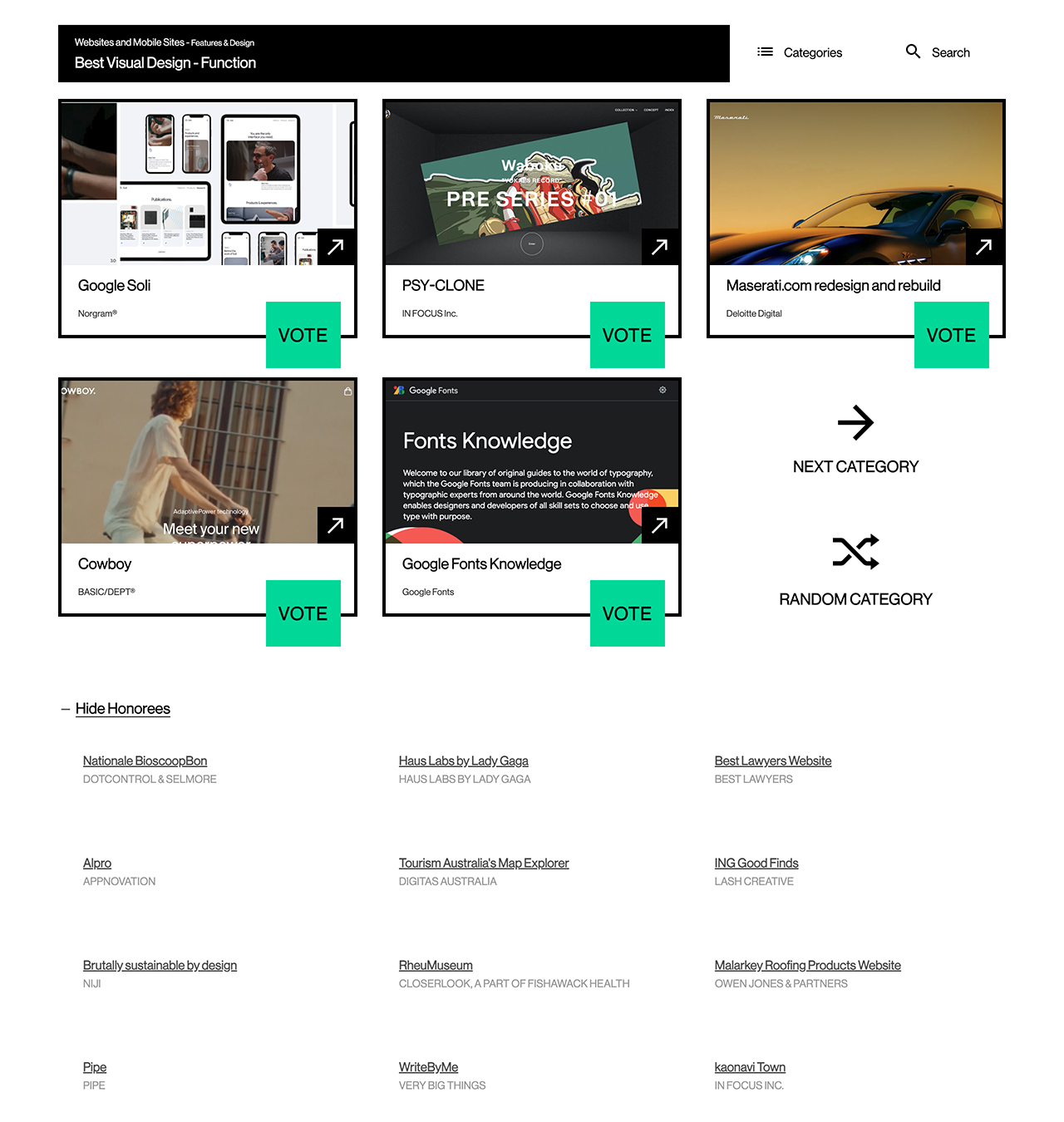 PSY-CLONEは同部門の最終上位5サイトに選出され一般投票が行われています。