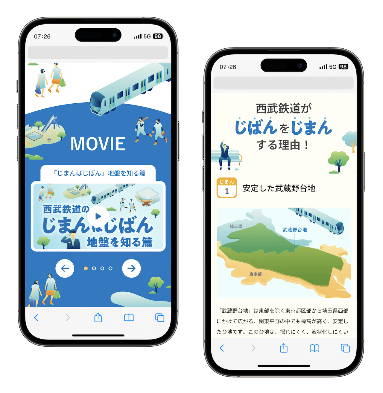 西武鉄道が通る武蔵野台地の固い地盤をはじめ、都心からのアクセスの良さ、緑と共存した街並み、充実した子育てができる環境など、沿線の魅力を紹介する「西武鉄道のじまんはじばん」プロモーション施策がローンチ。