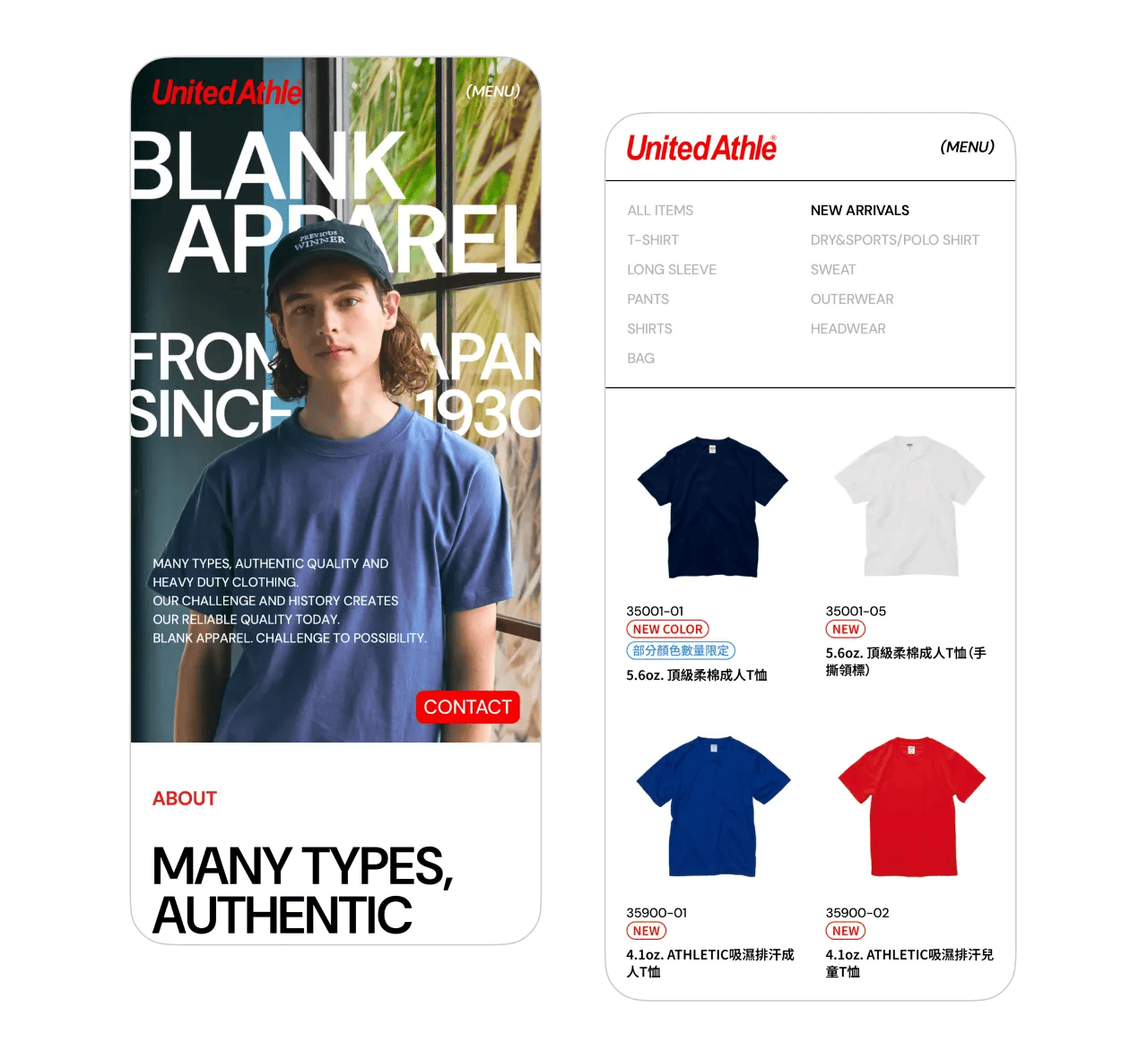 今回、United Athleの台湾向け公式サイトのデザイン・実装を担当。